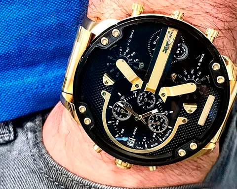 Portanto, é extremamente importante para mim saber sempre a hora exata. Este relógio faz um excelente trabalho nesta tarefa. Um modelo luxuoso para um homem de verdade”.