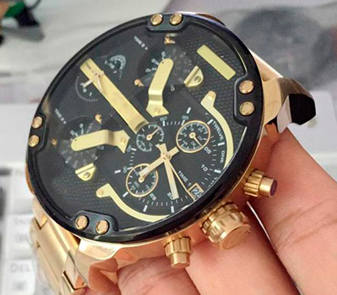 Ele combina desenho original, materiais de alta qualidade e mão de obra excepcional. O mostrador do relógio tem uma forma redonda clássica, o bracelete é feito de aço resistente ao choque com banho de ouro. As elegantes notas desportivas dão a este modelo um charme especial. Este relógio será um grande companheiro para quem não se compromete e está pronto para se destacar na multidão.